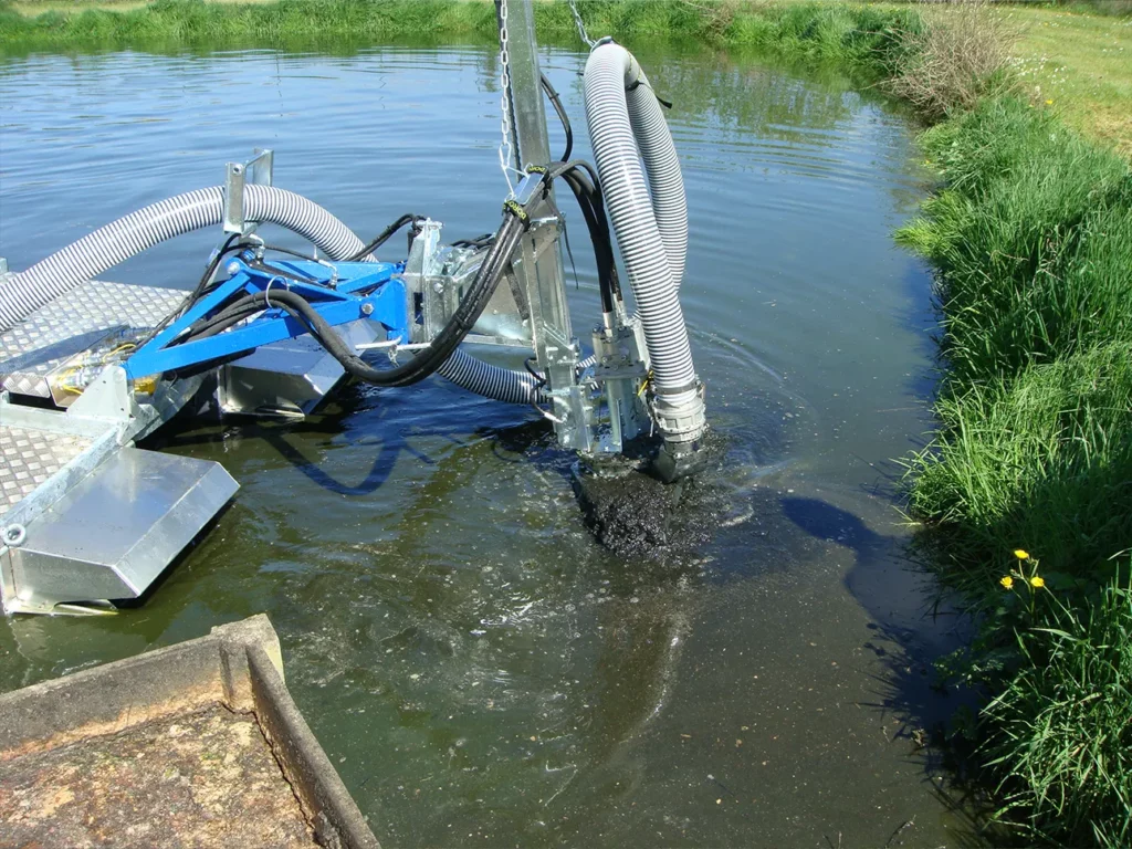 Nous proposons un curage par aspiration, une technique douce, précise et non intrusive permettant de retirer les sédiments accumulés dans les fossés, étangs ou cours d’eau.