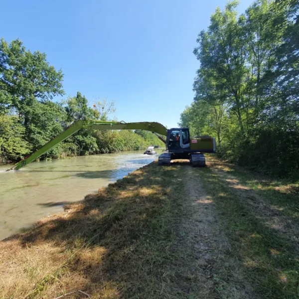 • Pelles équipées d’un panier faucardeur pour intervenir depuis les berges.